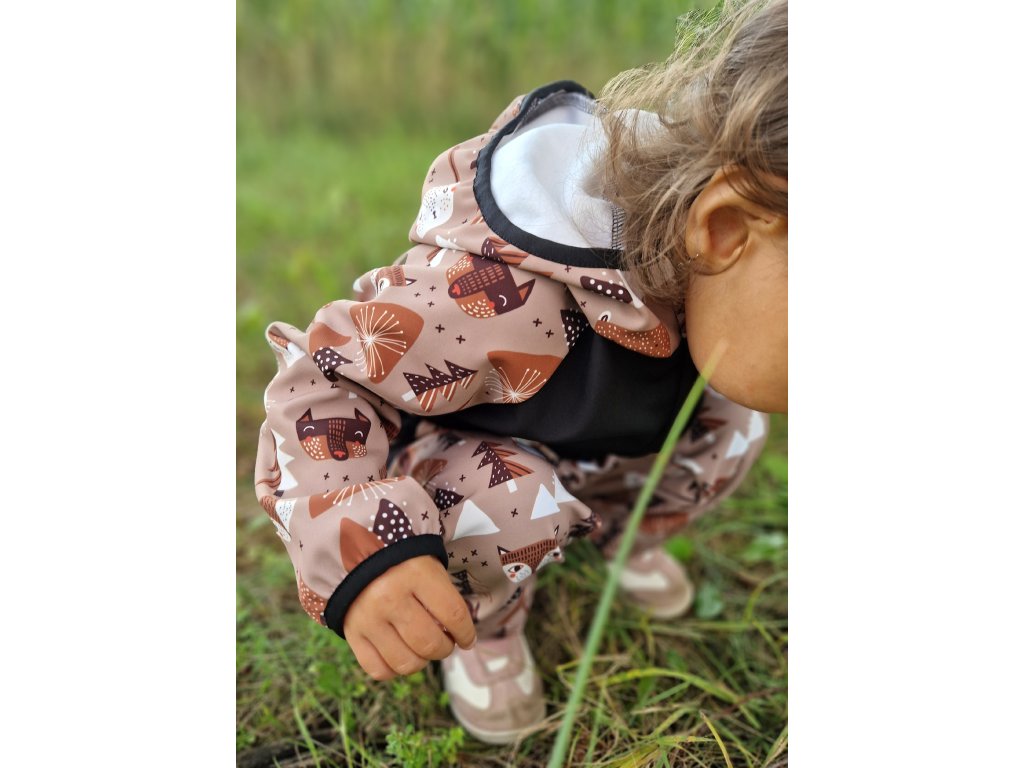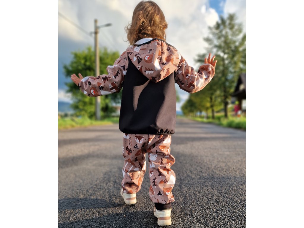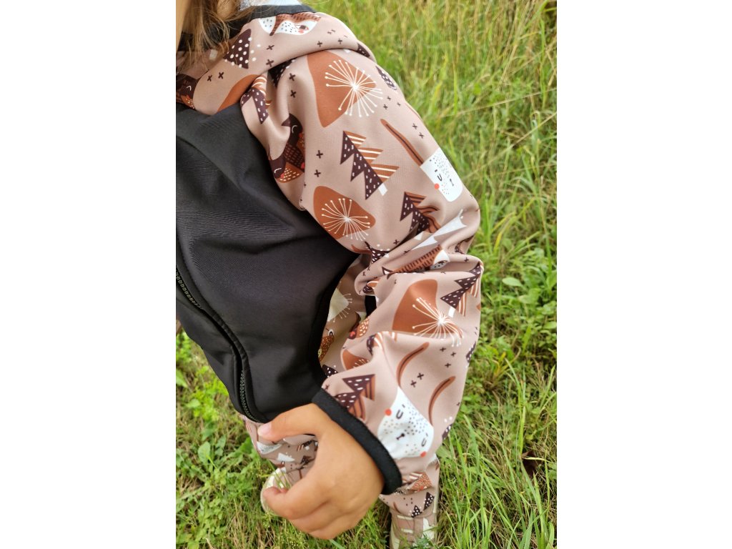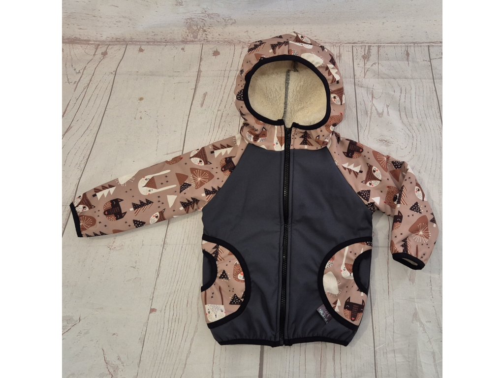 Softshellová bunda s beránkem Yháček, Lišky a medvědi caffé/antracit