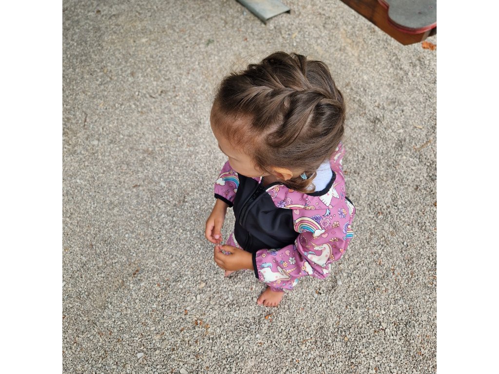 Softshellová bunda Yháček, letní, Jednorožci na starorůžové