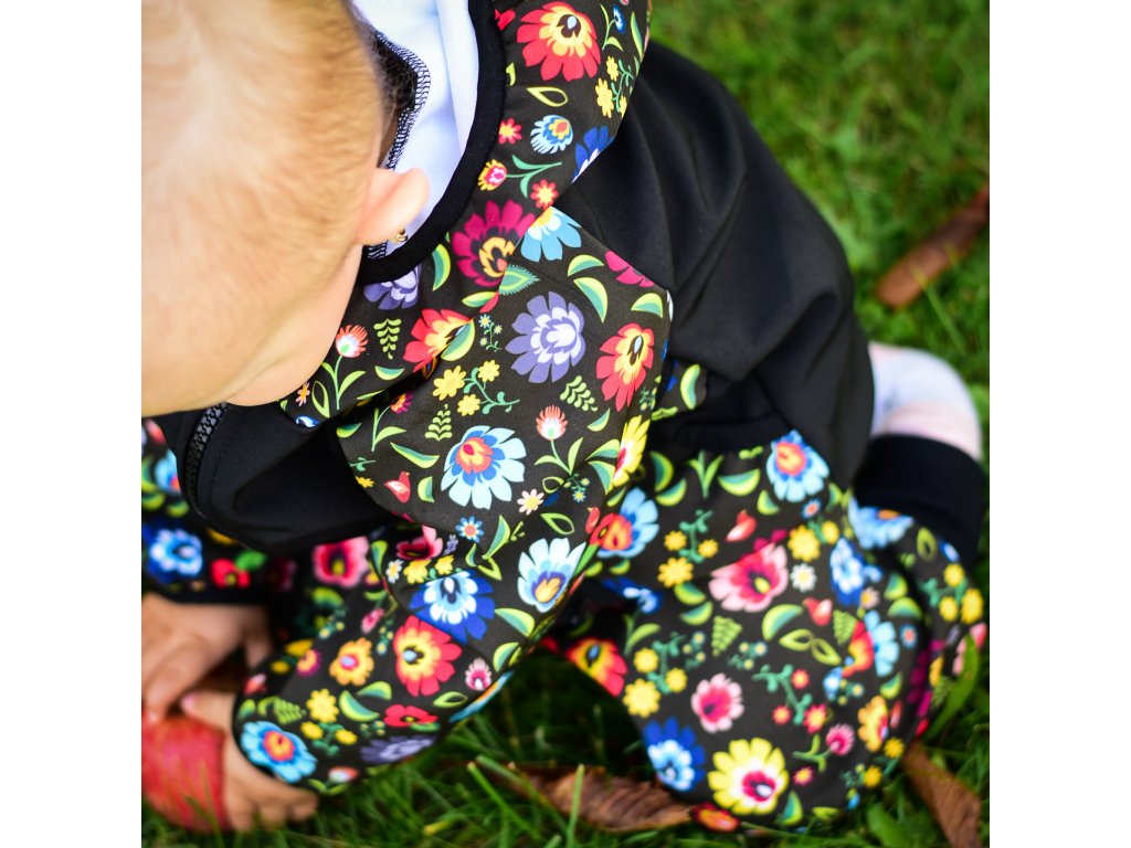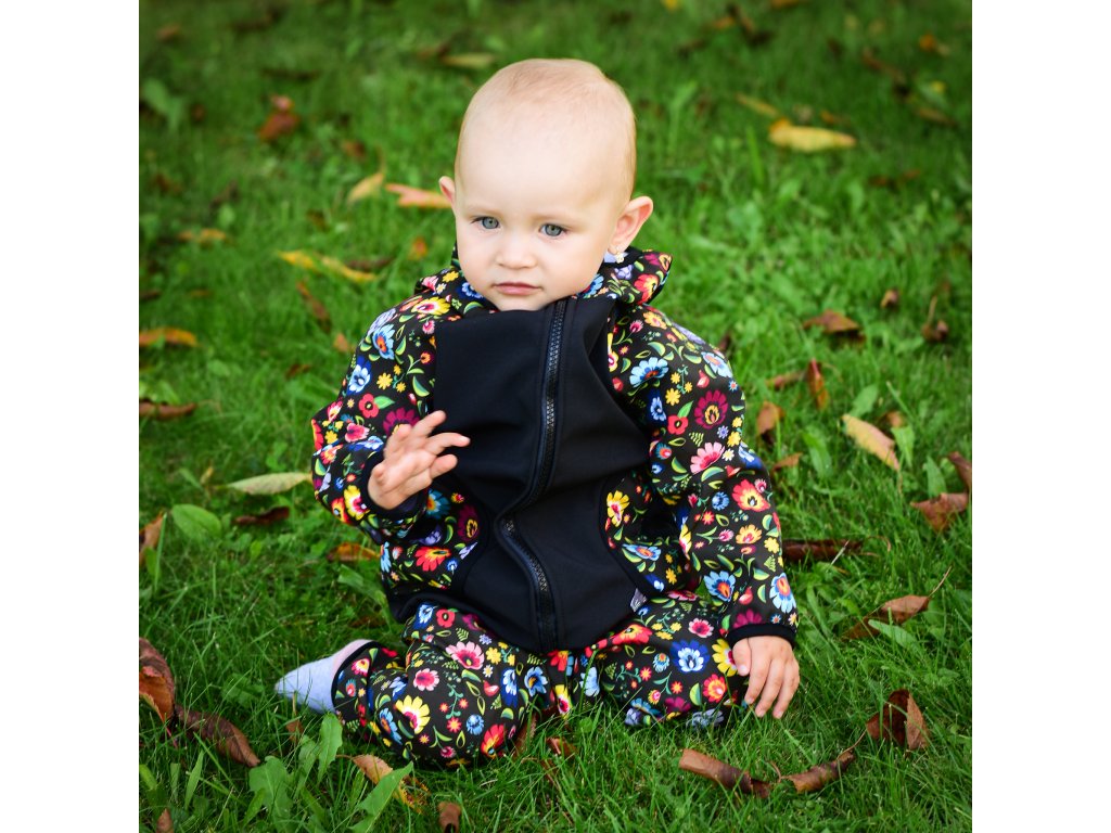 Funkční bunda Yháček, z vnější strany je nepromokavá, odolná proti větru, vhodná i do deště. Bunda má kapsy a kapucku. Je lemovaná pruženkou, lehce nabíranou, aby se vítr nedostal k dítěti.