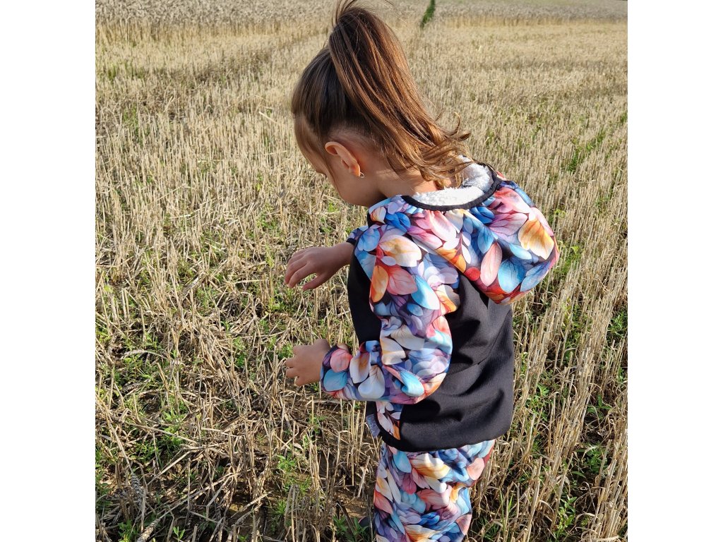 Funkční bunda Yháček, z vnější strany je nepromokavá, odolná proti větru, vhodná i do deště. Bunda má kapsy a kapucku. Je lemovaná pruženkou, lehce nabíranou, aby se vítr nedostal k dítěti.