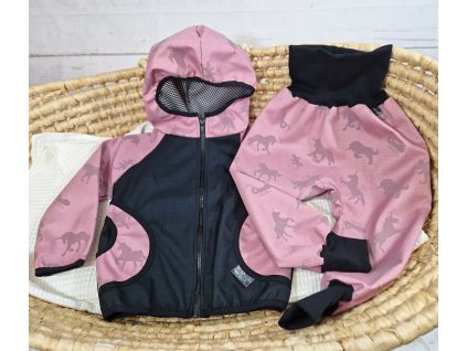 Softshellová bunda Yháček, podzim, reflexní, jednorožci na starorůžové