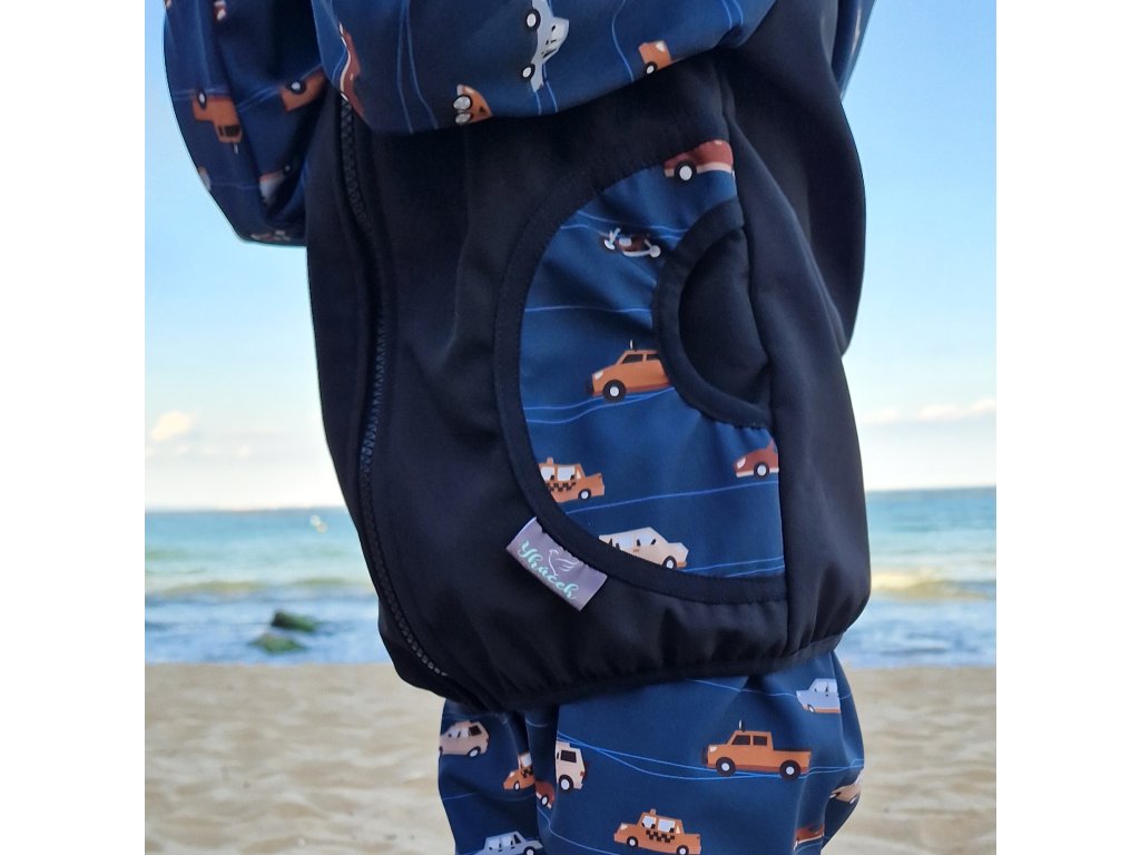 - Pozor, softshell (nejen ten náš) má sice nepropustnou membránu, ale není všemocný. Pokud dítě posadíte do kaluže, kalhoty mohou promoknout přes švy. Sníh a déšť zvládnou bez problémů.