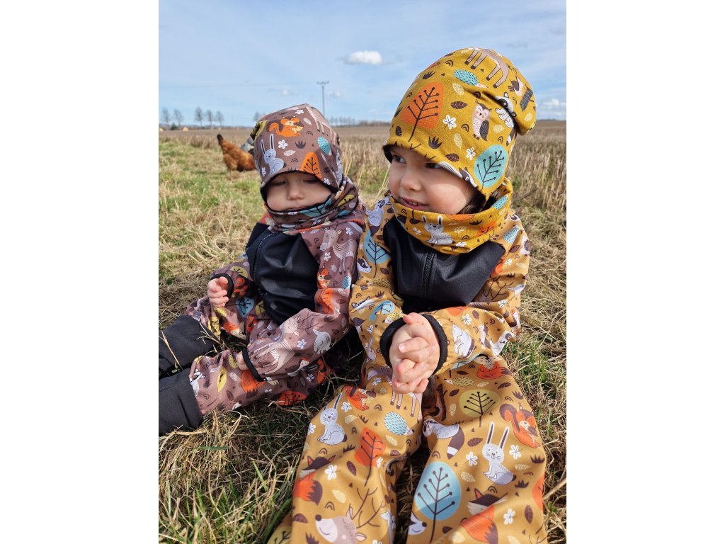 Softshellové kalhoty s beránkem Yháček, Lesní zvířátka okr