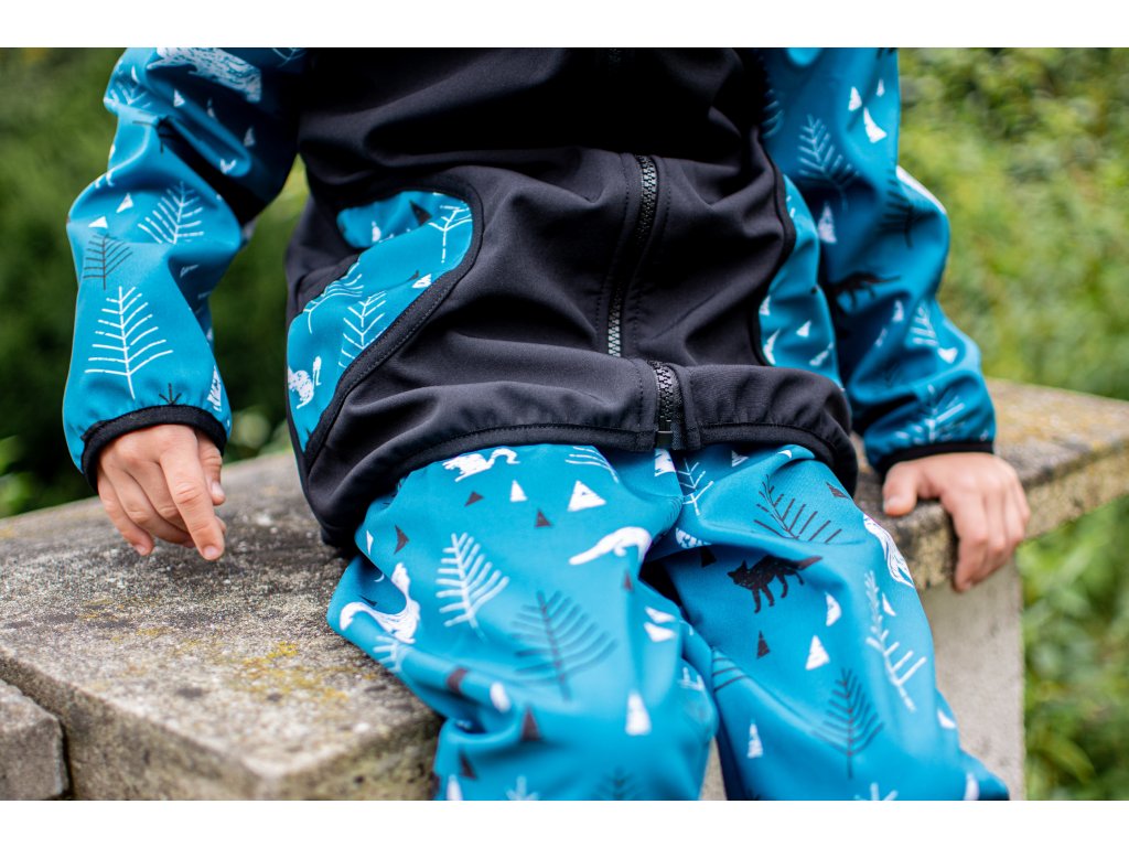 Softshellové kalhoty Yháček, jarní, Lesní zvěř na petrolejové