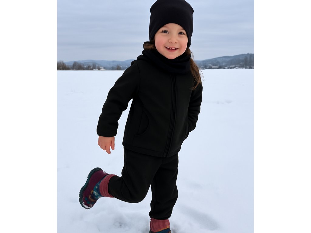 - Pozor, softshell (nejen ten náš) má sice nepropustnou membránu, ale není všemocný. Pokud dítě posadíte do kaluže, kalhoty mohou promoknout přes švy. Sníh a déšť zvládnou bez problémů.