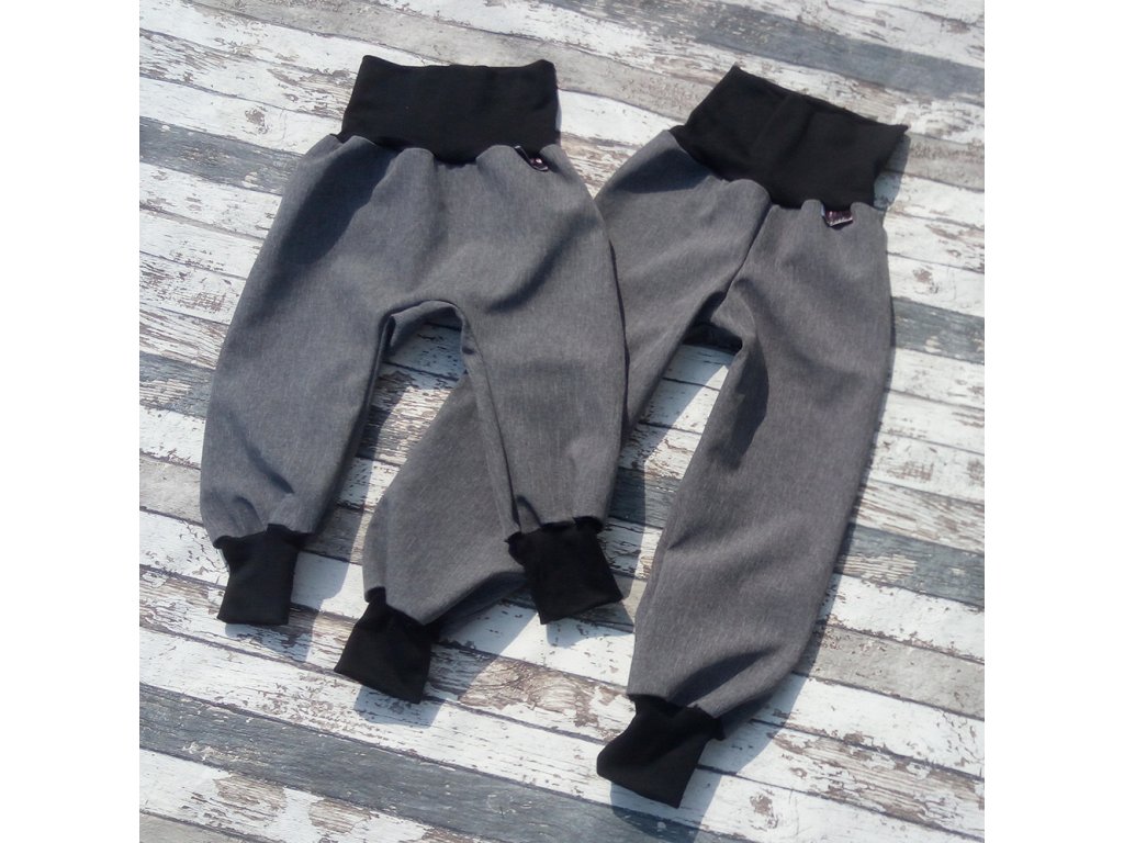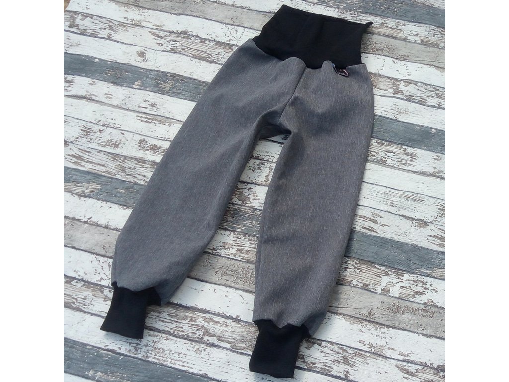Softshellové kalhoty Yháček, zimní, šedé žíhané/černá, DOPRODEJ