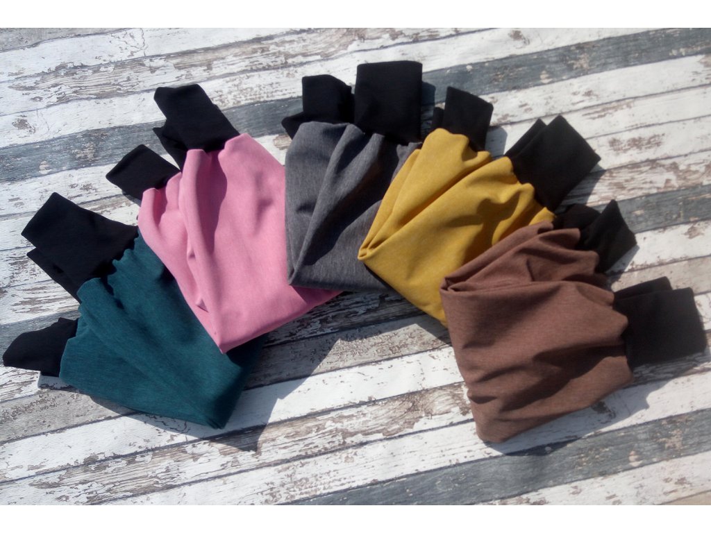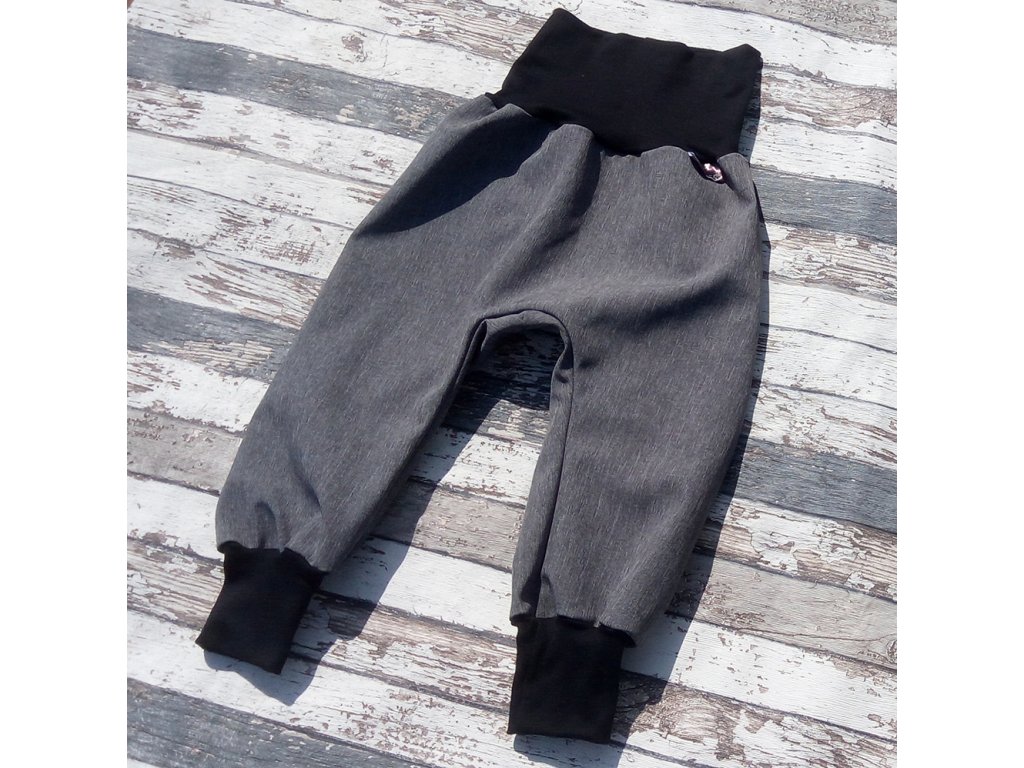 Díky nápletům v pase i na nohavicích, které lze ohrnout, kalhoty krásně „rostou“ s dítětem. Vydrží i několik sezón. -