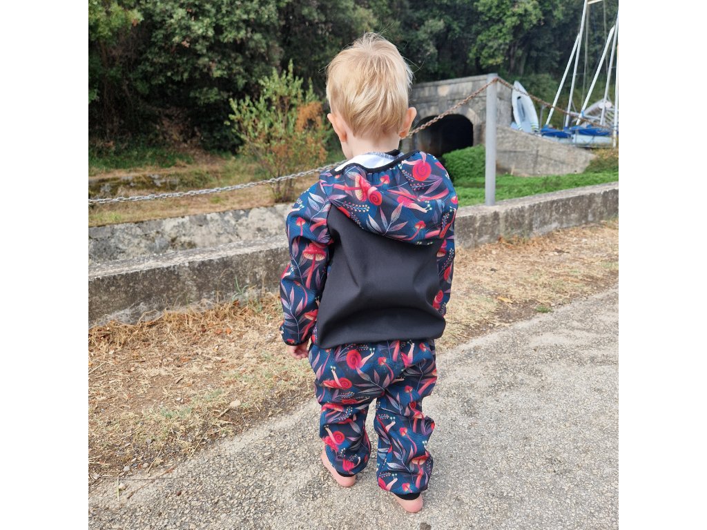 - Pozor, softshell (nejen ten náš) má sice nepropustnou membránu, ale není všemocný. Pokud dítě posadíte do kaluže, kalhoty mohou promoknout přes švy. Sníh a déšť zvládnou bez problémů.