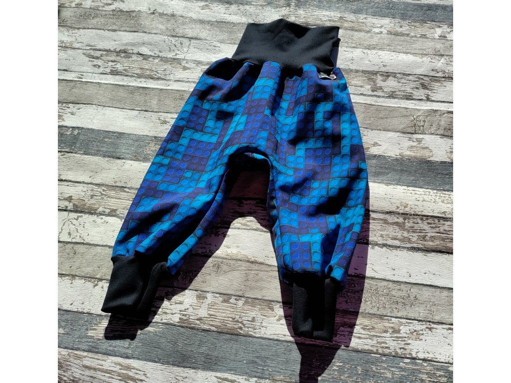 Zimní softshellové kalhoty Yháček, stavebnice modrá, poslední kus, vel. 68