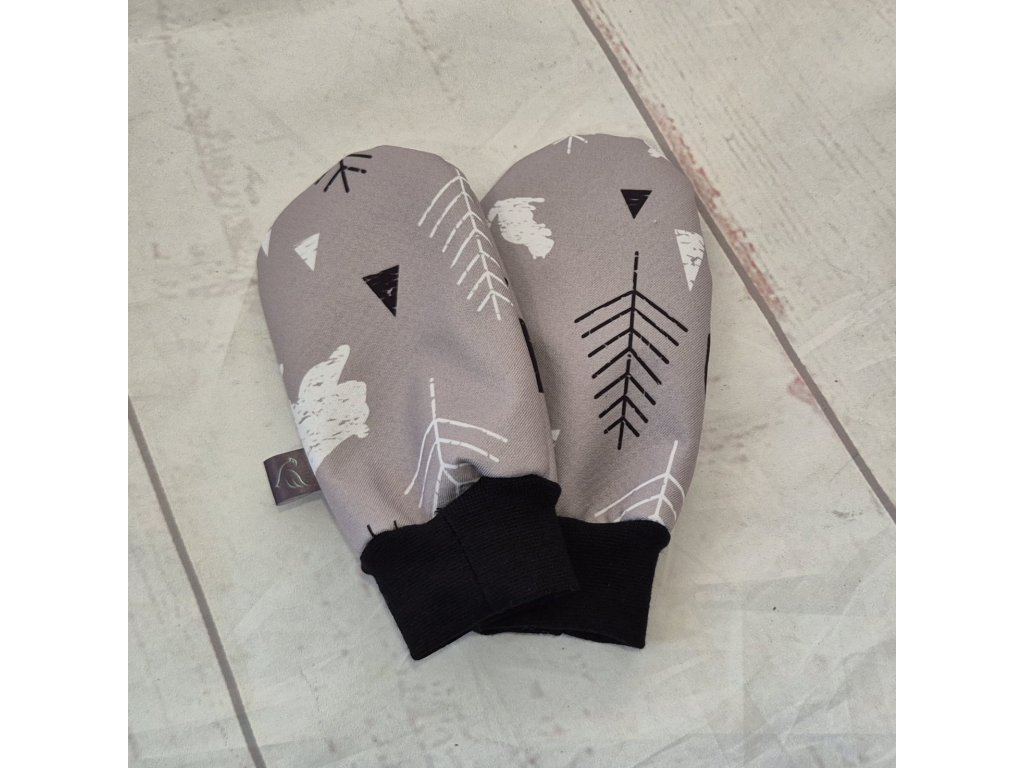 Mini softshellové rukavice bez palce s beránkem, Lesní zvěř na šedé