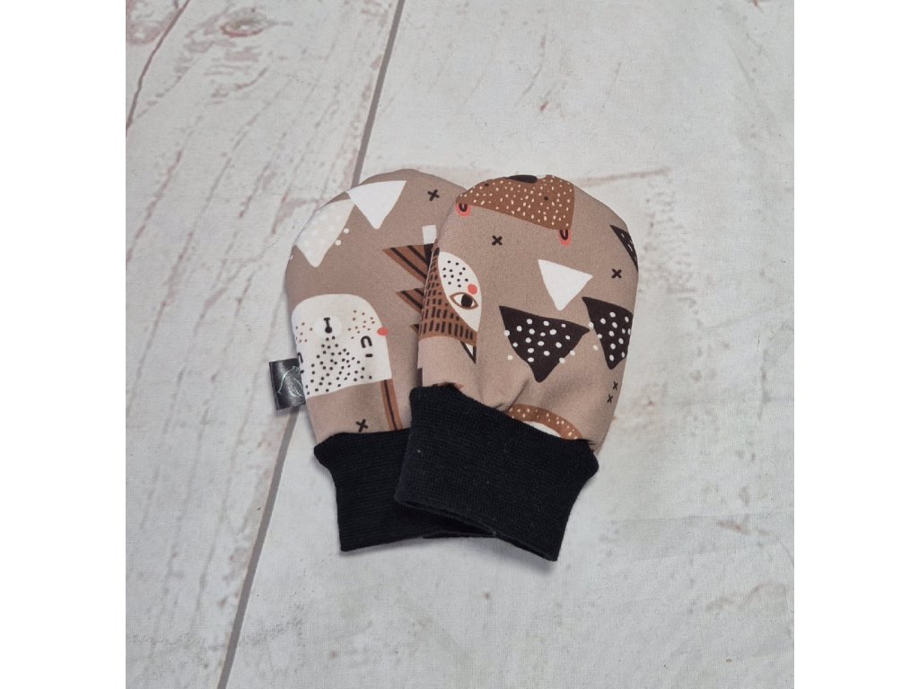 Mini softshellové rukavice bez palce s beránkem, Lišky a medvědi caffé