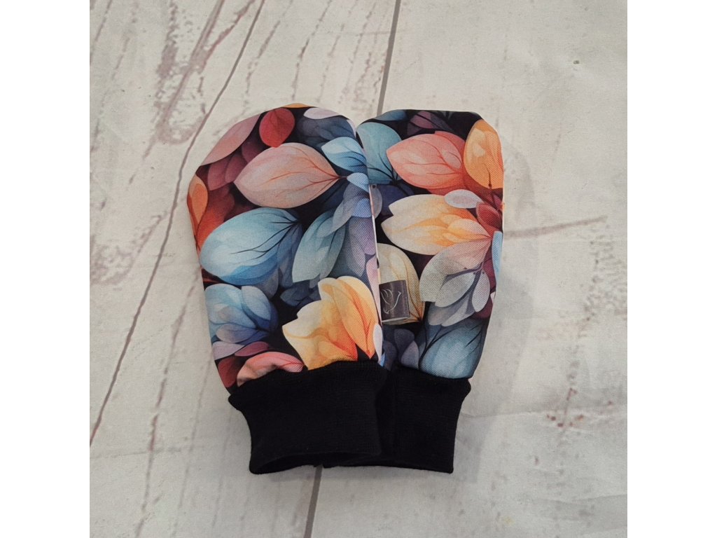 Mini softshellové rukavice bez palce s beránkem, Pastelové lístky, II. jakost