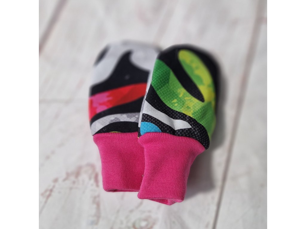 Mini softshellové rukavice bez palce s merinem, Barevný maskáč