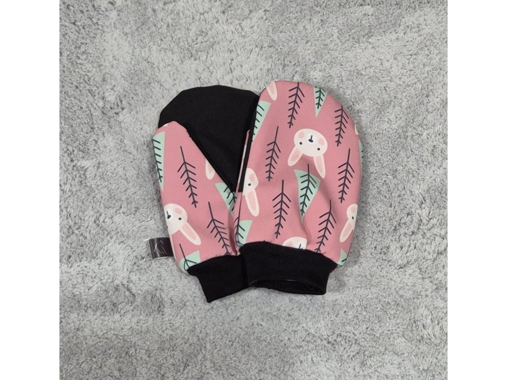Softshellové rukavice s beránkem, Zajíčci na starorůžové