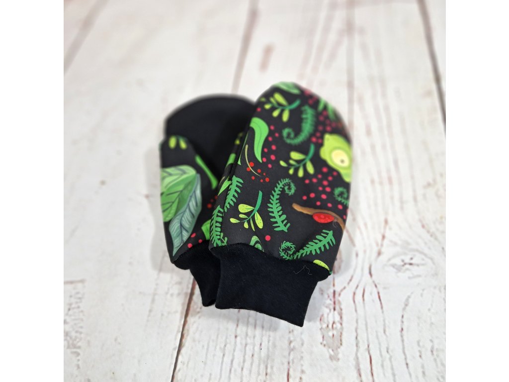 Softshellové rukavice s merinem, chamíci a berušky na černé