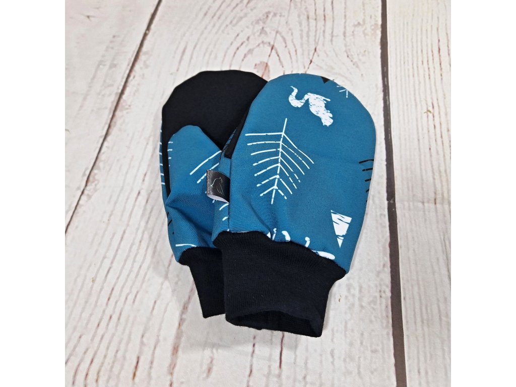 Softshellové rukavice s merinem, lesní zvěř na petrolejové