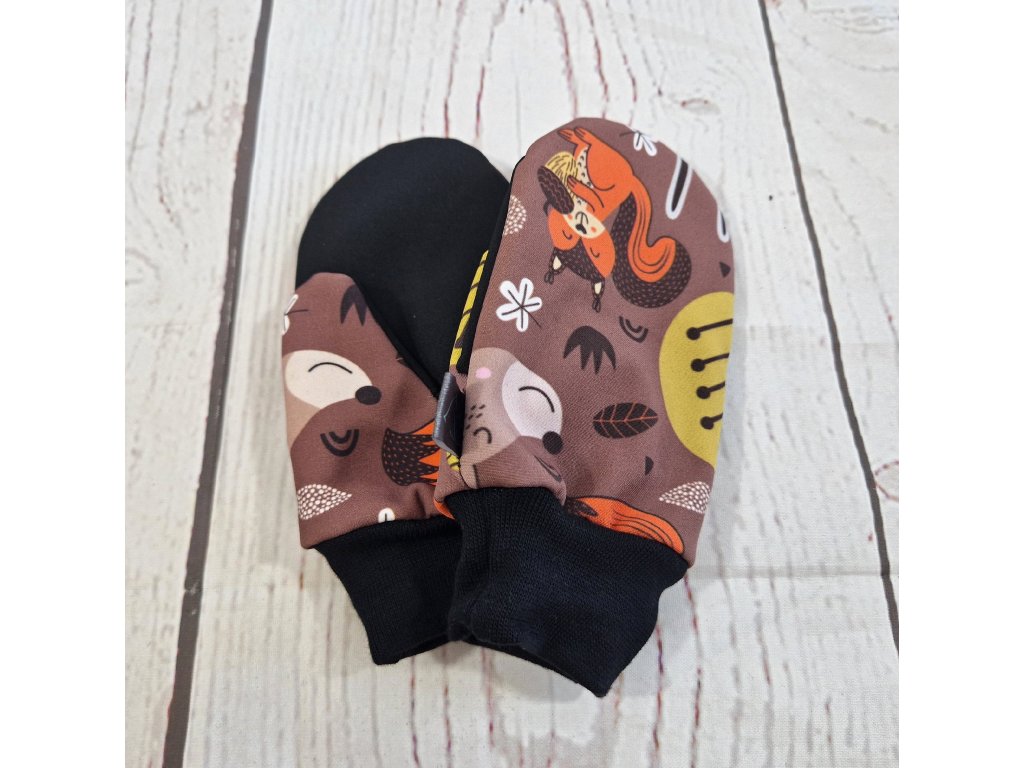 Softshellové rukavice s merinem, Lesní zvířátka hnědá