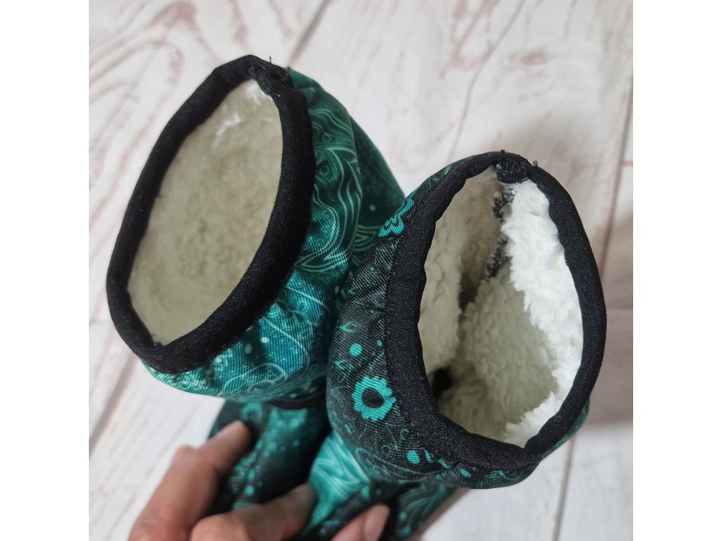 Pro větší teplo doporučujeme pod válenky ještě vrstvit, ideálně funkční prádlo nebo merino (každé dítě má jiné potřeby, počet vrstev tedy přizpůsobíme individuálně). Válenky mají praktickou gumičku, která se dvakrát omotá kolem kotníčku, takže skvěle drží a nesklouzávají.