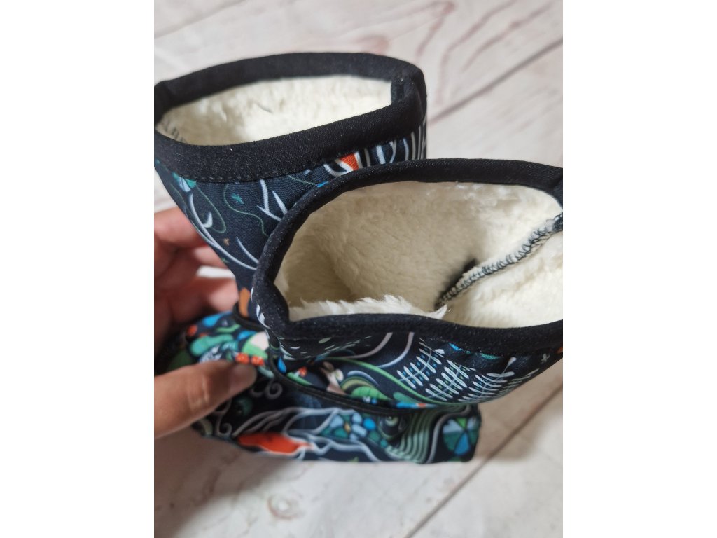 Pro větší teplo doporučujeme pod válenky ještě vrstvit, ideálně funkční prádlo nebo merino (každé dítě má jiné potřeby, počet vrstev tedy přizpůsobíme individuálně). Válenky mají praktickou gumičku, která se dvakrát omotá kolem kotníčku, takže skvěle drží a nesklouzávají.