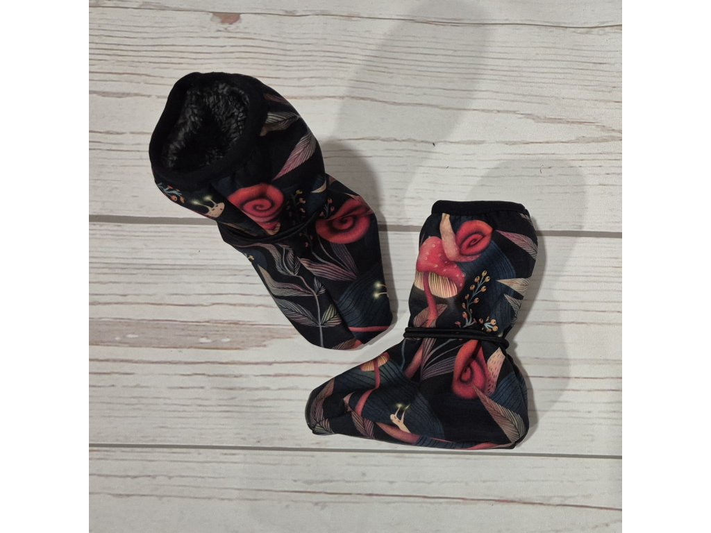 Softshellové válenky zahřejí nožičky od jara do podzimu. Pro tuto verzi botiček jsme použili jednu vrstvu nejteplejšího softshellu - softshell s beránkem uvnitř. Pro ještě větší teplo doporučujeme pod válenky obléci ještě několik vrstev (vrstvíme vždy dle individuálních potřeb dítěte - každé má jiné potřeby). Mají gumičku, která se 2x přetáhne kolem kotníčku.
