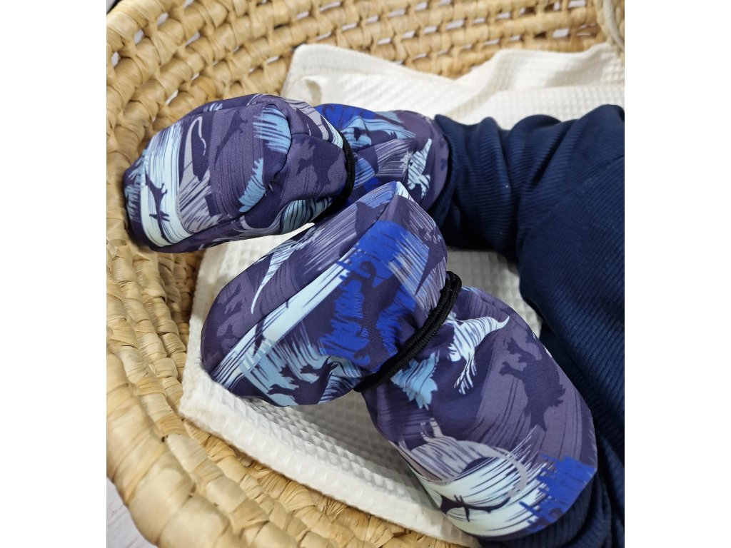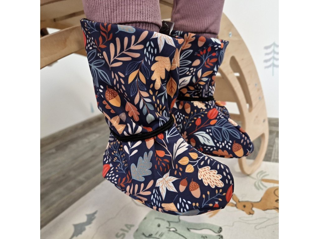 Teplé botičky Yháček z kvalitních, hřejivých materiálů. Mají gumičku, která se 2x přetáhne kolem kotníčku. Vnější vrstva - softshell - nepromokne, neprofoukne a krásně drží teplo.