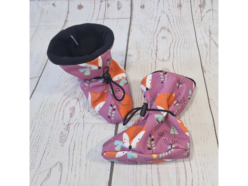 Nosicí botičky/válenky NEW Yháček, Liščí hlavy na starofialové, s brzdičkou