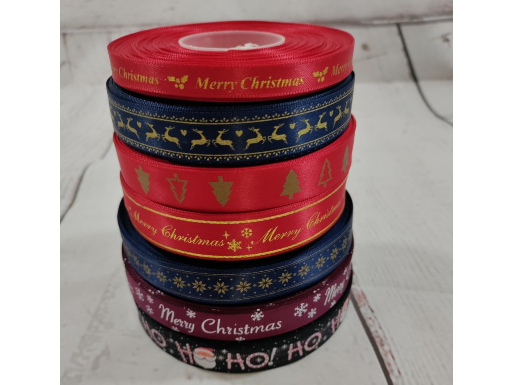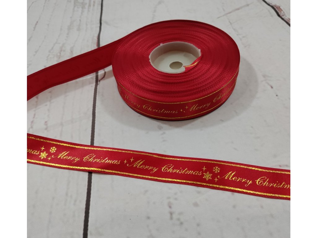 Stuha saténová, Merry Christmas na červené, 19 mm