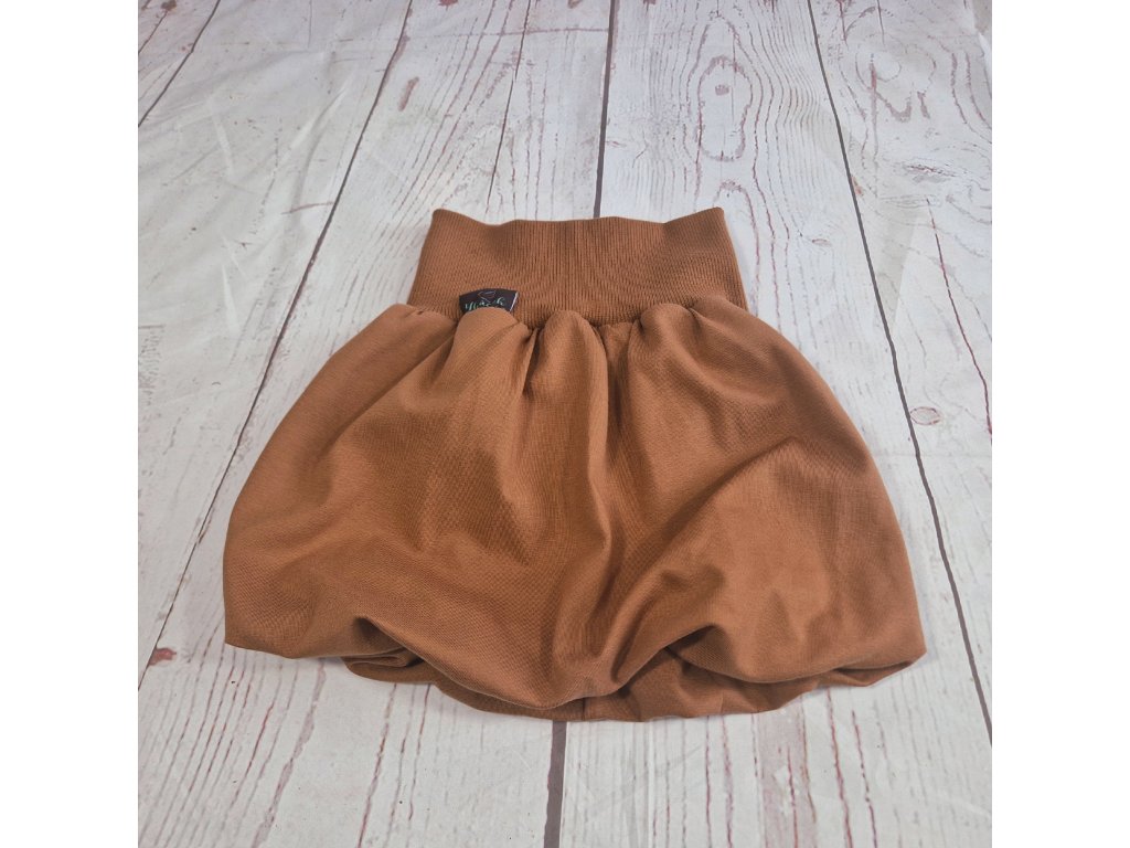Krásná balónová sukýnka z příjemných kvalitních materiálů. Je nařasená, pěkně nadýchaná. Sukýnka je rostoucí, jedno léto je možné ji nosit v délce pod kolínka, další rok se dá nosit jako sukýnka nad kolena a třeba vydrží i na třetí sezónu.