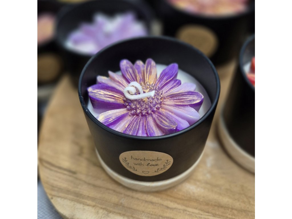 Sójová svíčka AMI LUMEA, Gerberka fialová třpytivá
