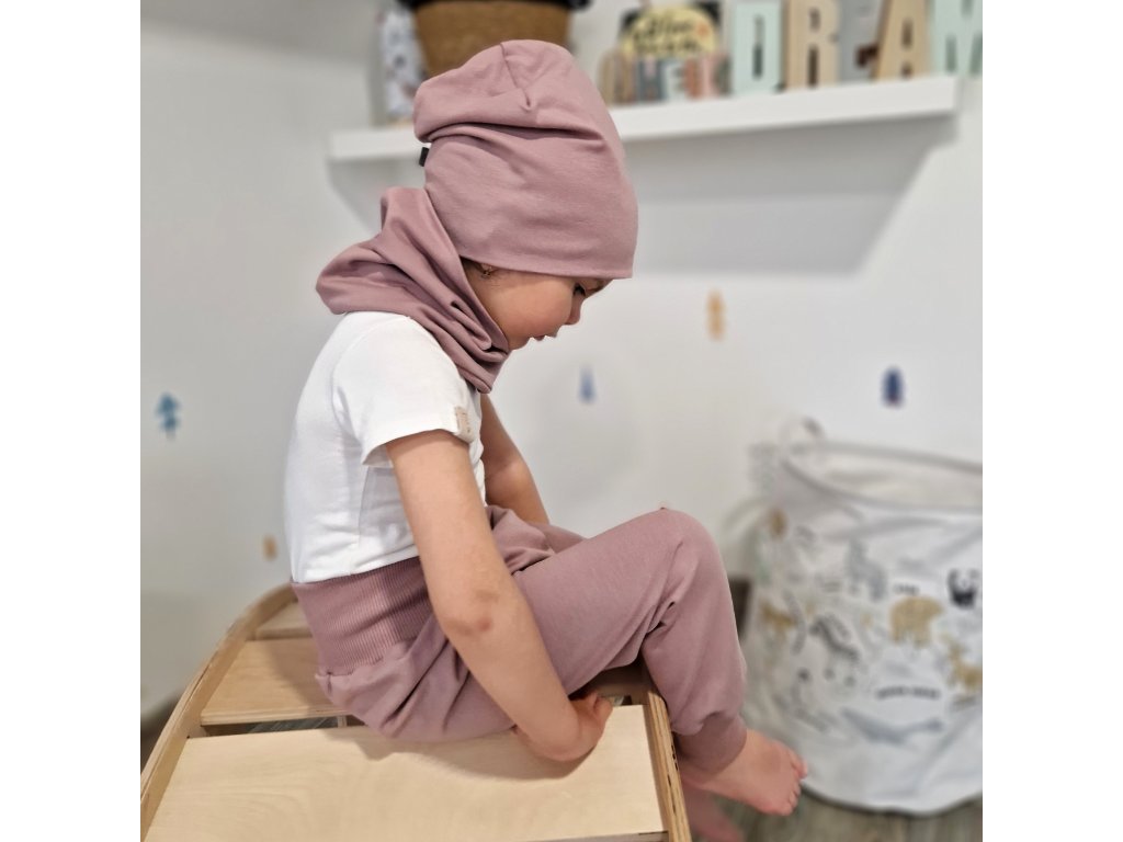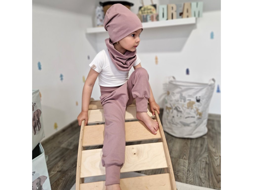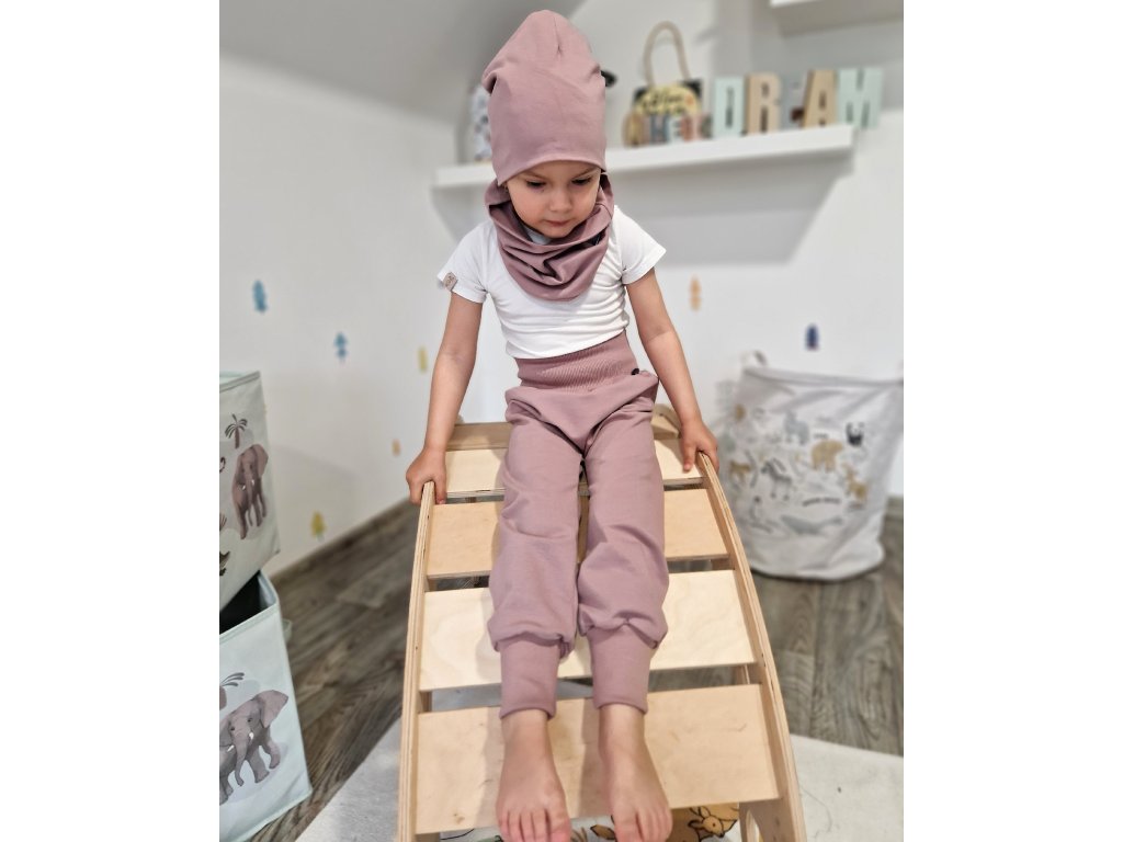Oblíbené tepláčky Yháček 2 v 1. Mají široké náplety v pase a u kotníčků. Náplety se dají zahnout, tím se zmenší velikost. Když začnou být tepláčky krátké, dají se nosit jako tříčtvrťáčky. Díky tomu vydrží mnohem déle, než jakékoli jiné tepláky. Krásně sedí na jednorázové i látkové pleny. Volnější střih se sníženým sedem pro dokonalé pohodlí novorozence i batolete.