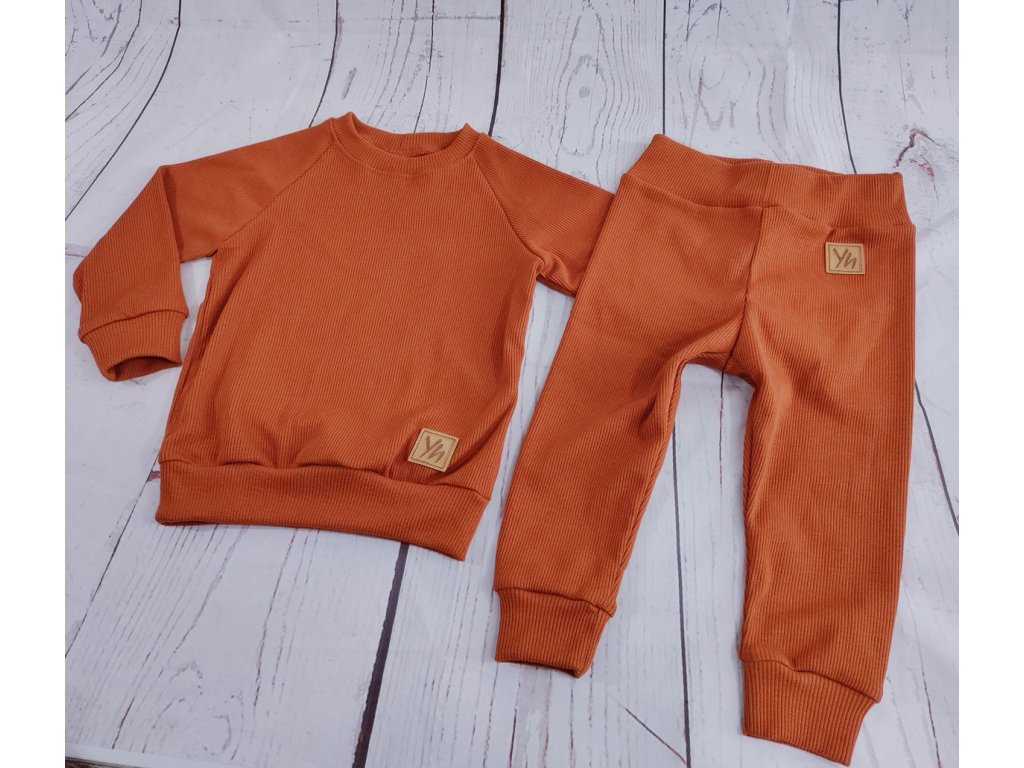 Žebrované tepláčky Yháček, cihlové