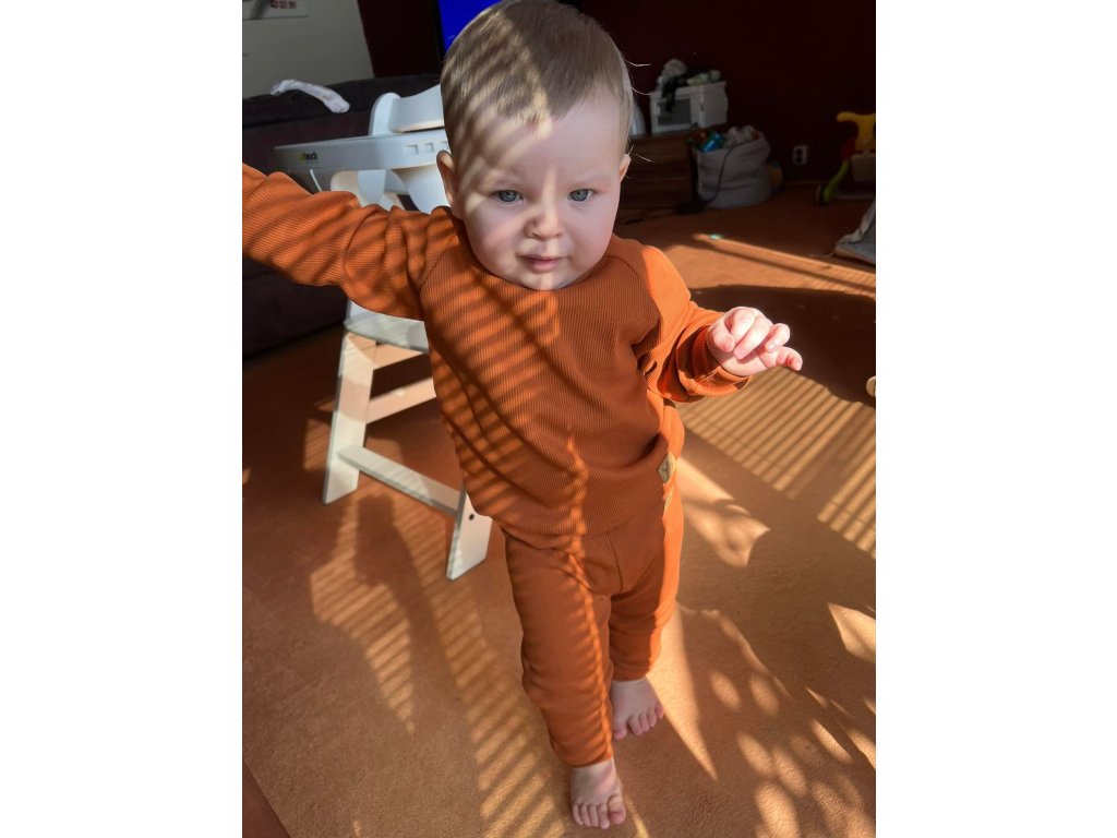 Slušivé tepláčky z žebrovaného materiálu. Jsou vhodné na celoroční nošení. Sedí hubeňourům i barokním andělíčkům. V pase mají jemnou gumu, která netlačí a nezařezává se do těla.