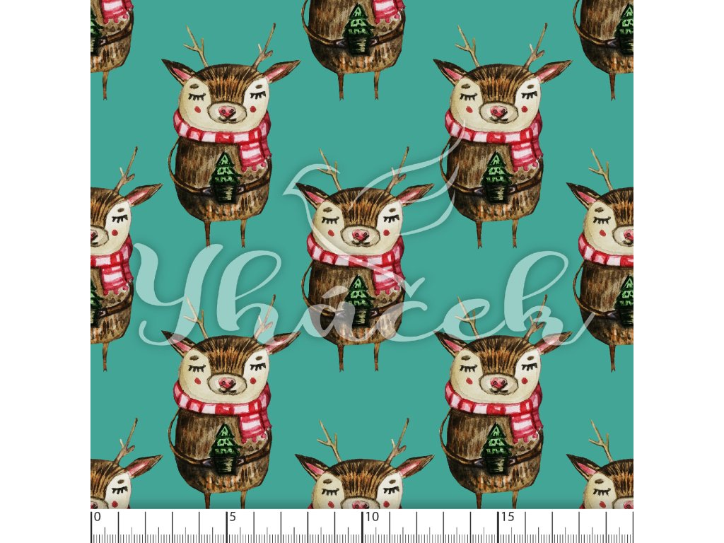 Zakázkový tisk, softshell, kočárkovina... Jelínek s vánočním stromečkem na tmavě mentolové