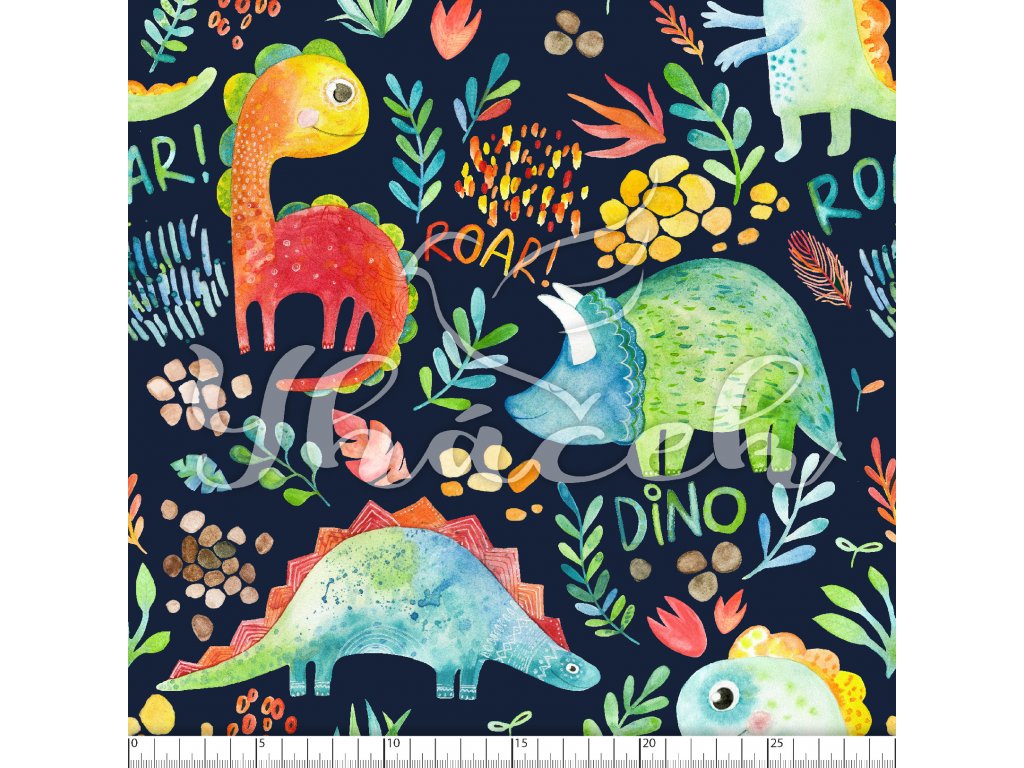Zakázkový tisk, softshell, kočárkovina... Dinosauři roar na modré