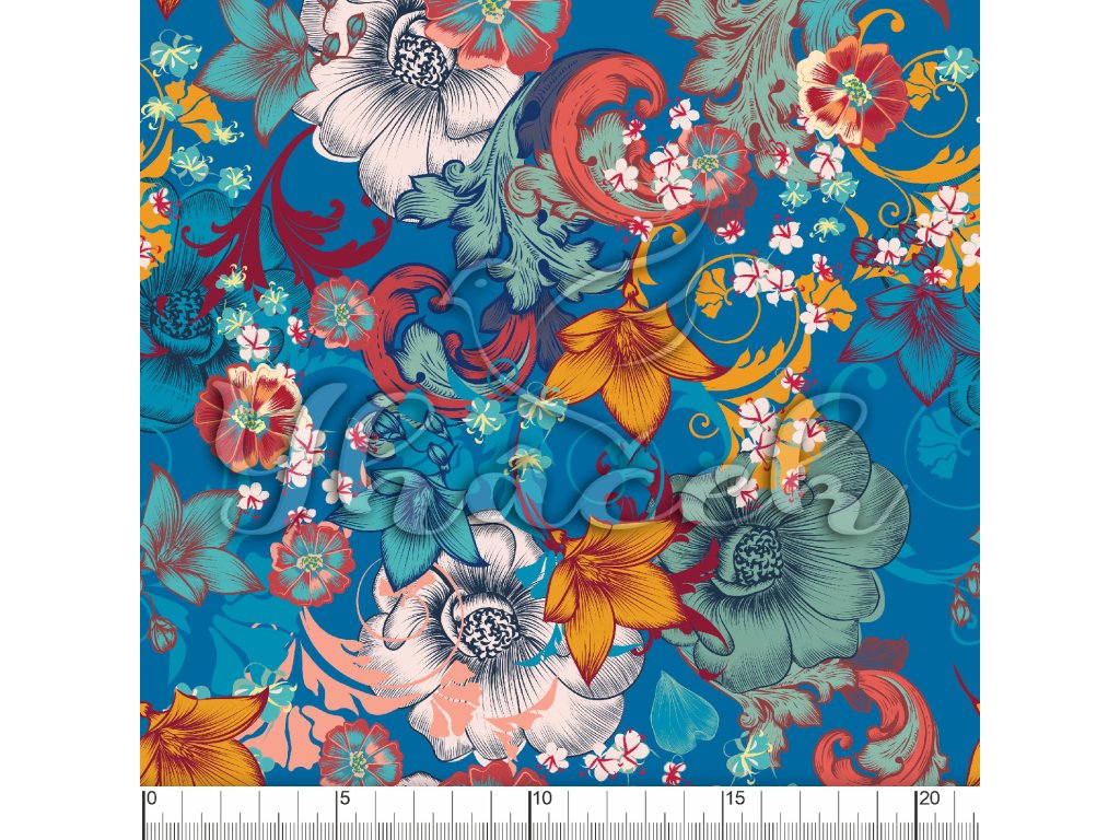 Zakázkový tisk, softshell, kočárkovina... Havajské květy modré