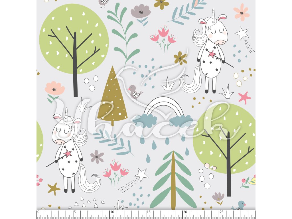 Zakázkový tisk, softshell, kočárkovina... Magický jednorožec na šedé