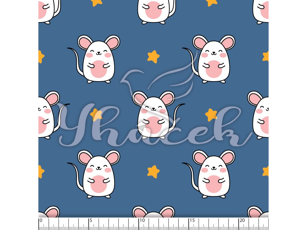 Zakázkový tisk, softshell, kočárkovina... Myšky a hvězdičky na modré
