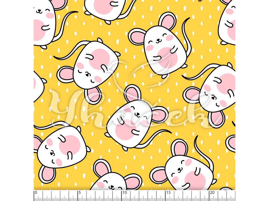 Zakázkový tisk, softshell, kočárkovina... Myšky na žluté