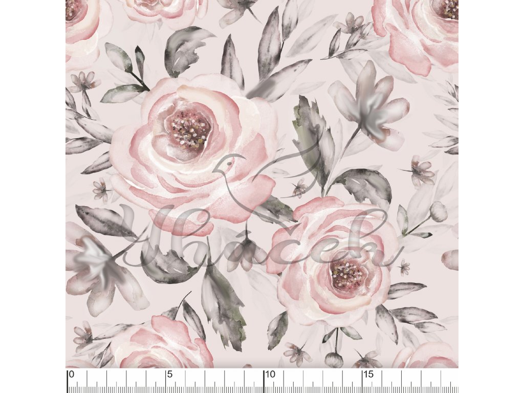 Zakázkový tisk, softshell, kočárkovina... Růže na jemně růžové