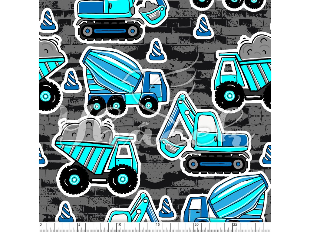 Zakázkový tisk, softshell, kočárkovina... Stavební stroje modré