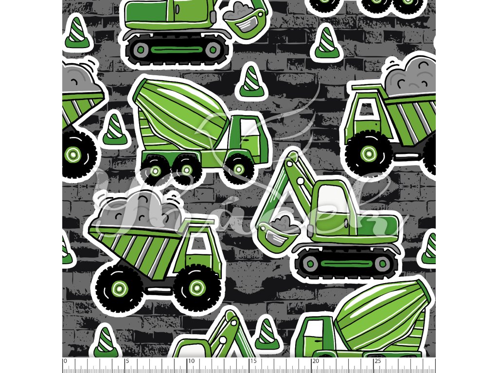 Zakázkový tisk, softshell, kočárkovina... Stavební stroje zelené