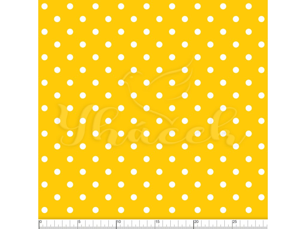 Zakázkový tisk, softshell, kočárkovina... Velký puntík na sytě žluté