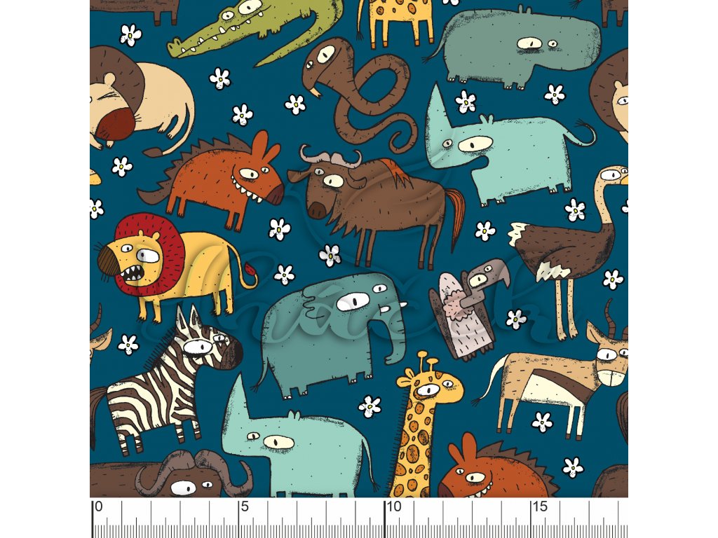 Zakázkový tisk, softshell, kočárkovina... Wild Africa a kytky jeans