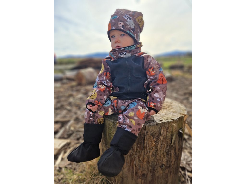 Softshellová bunda s beránkem Yháček, Lesní zvířátka hnědá
