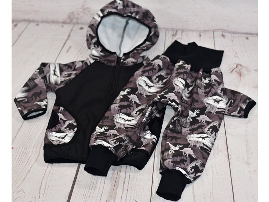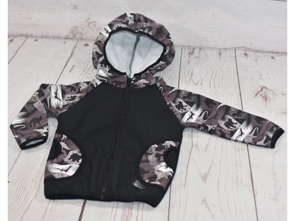 Softshellová bunda Yháček, zimní, dinosauři na šedé, II. jakost