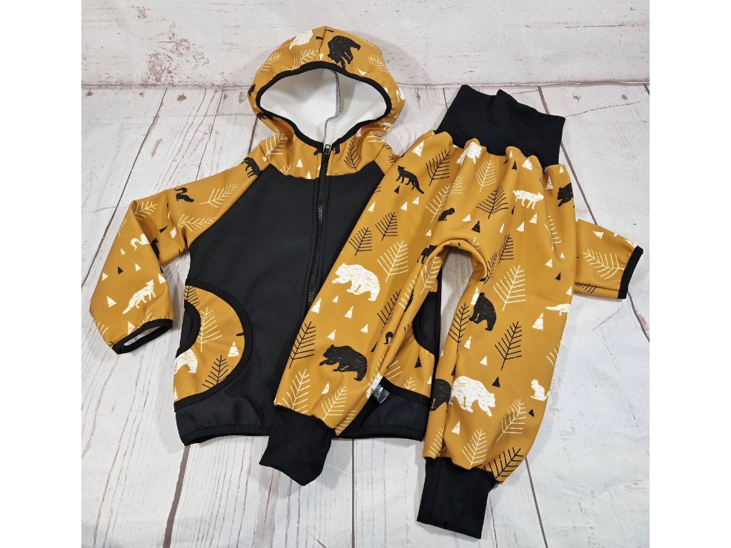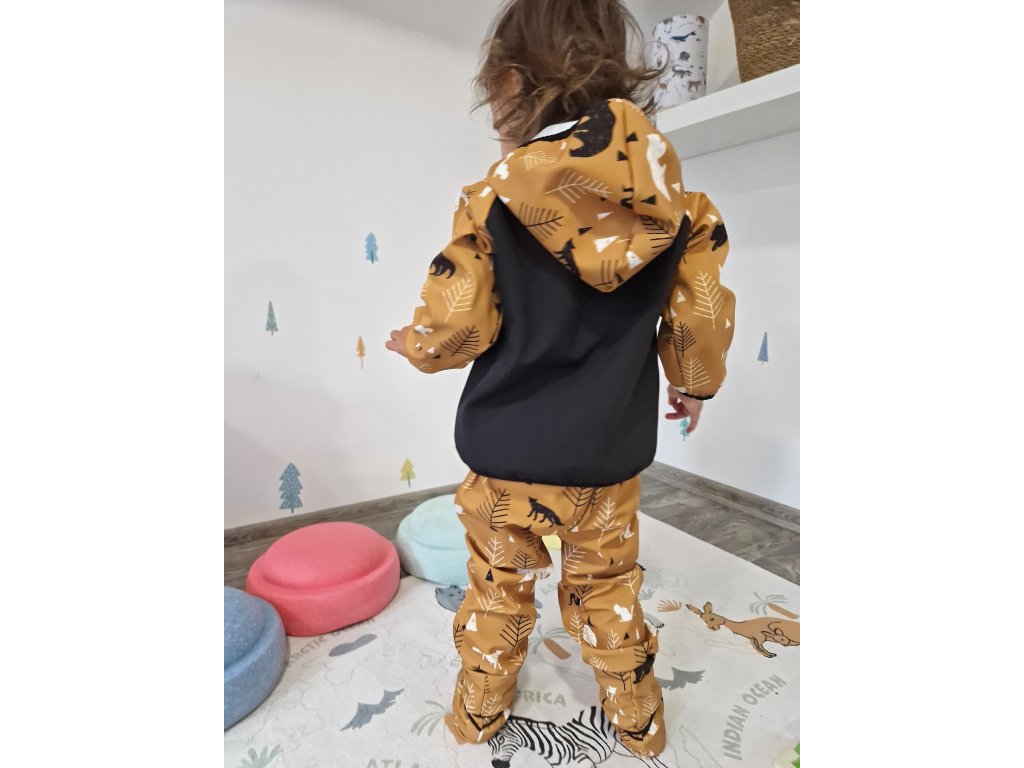Softshellová bunda Yháček, zimní, Lesní zvěř na hořčicové