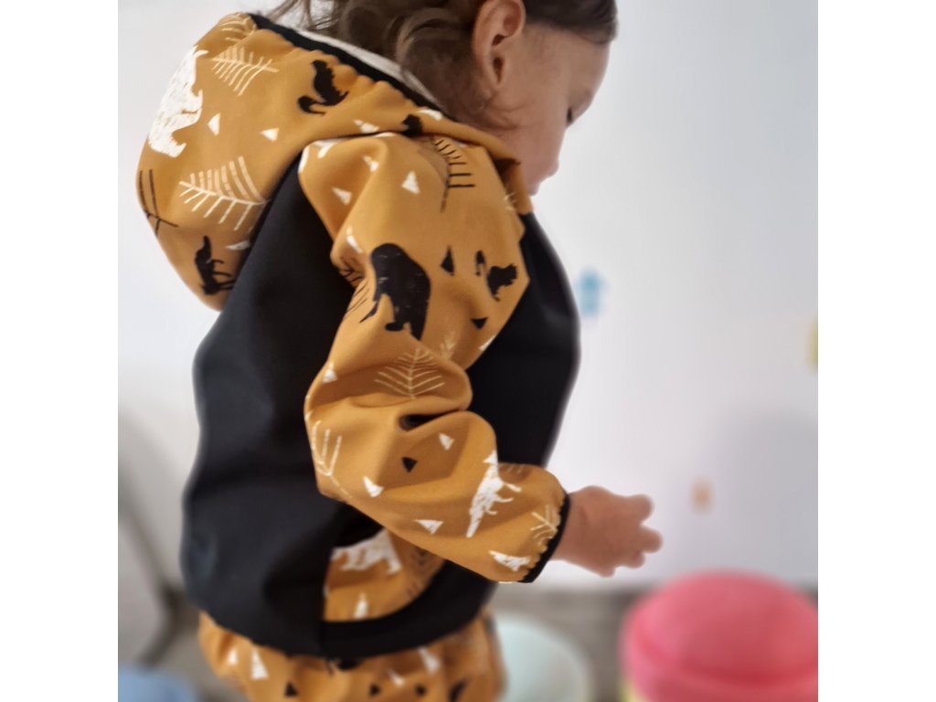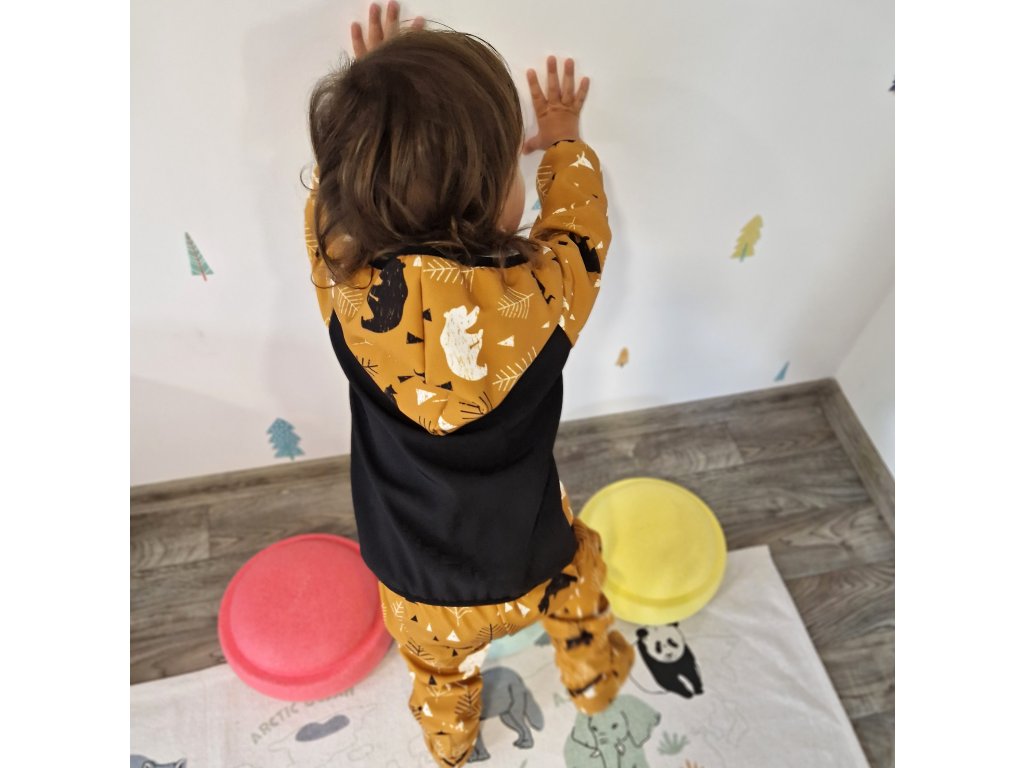 Funkční dětská bunda Yháček, z vnější strany je nepromokavá, odolná proti větru, dešti, vhodná i do sněhu. Z rubové strany je hřejivý flís. Bunda má kapsy a kapucku. Je lemovaná pruženkou, lehce nabíranou, aby se sníh či vítr nedostal k dítěti.