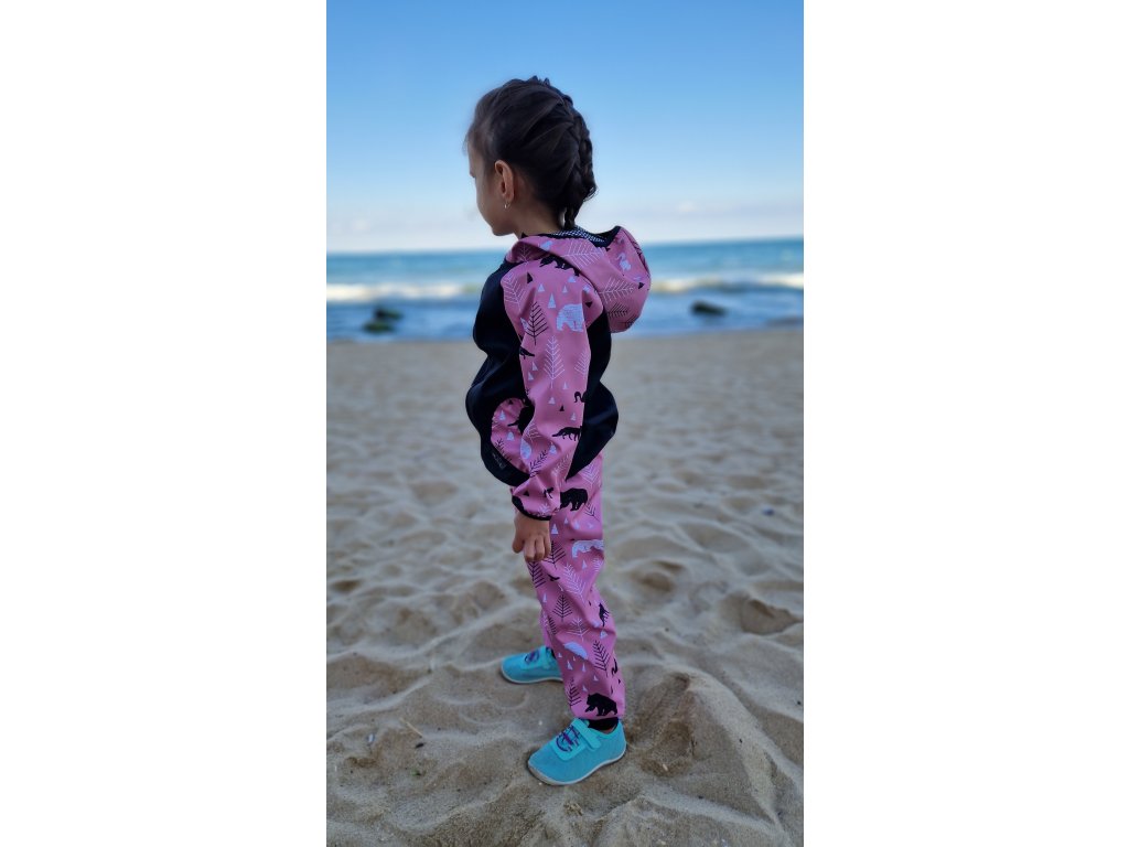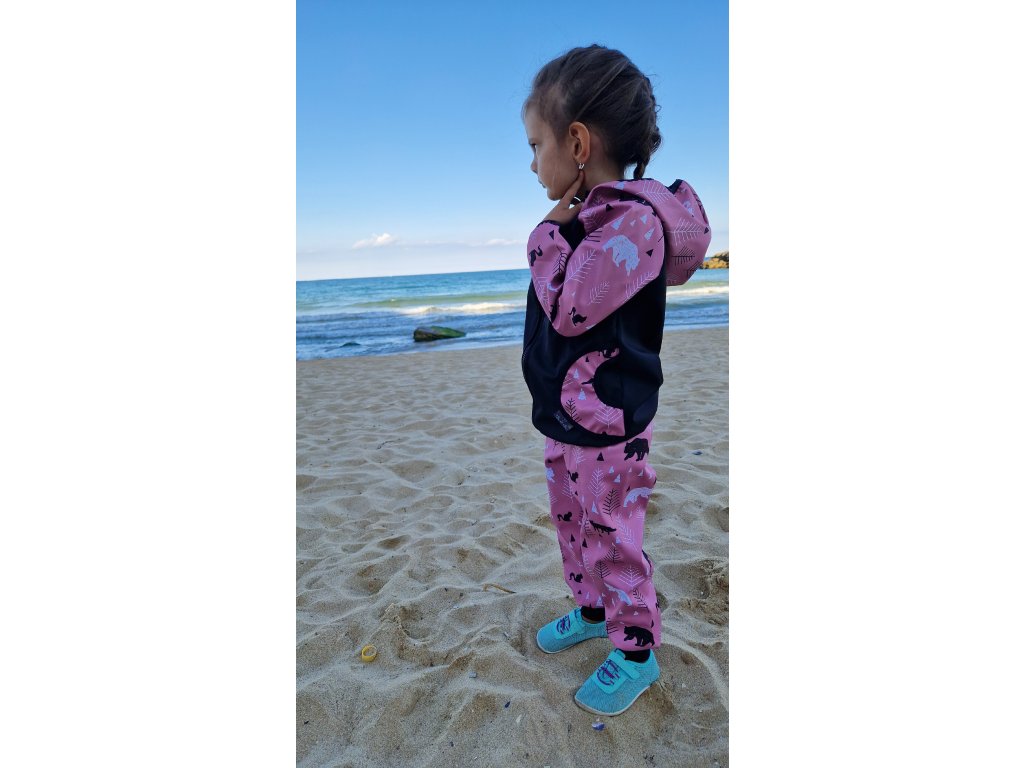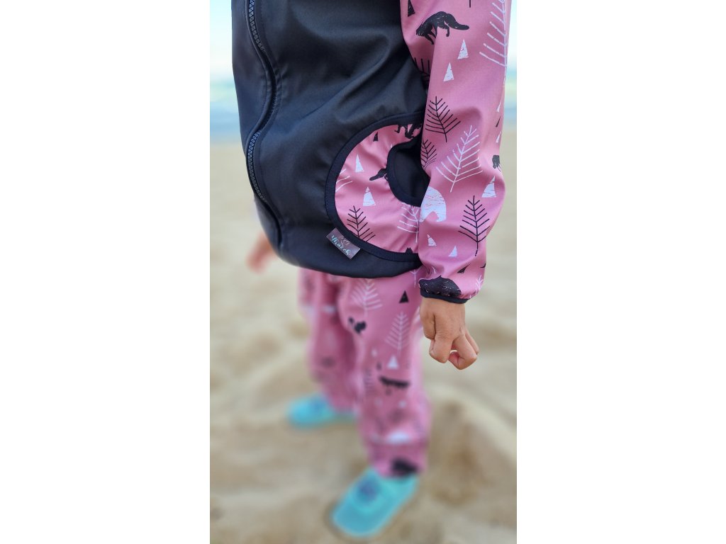 Softshellová bunda Yháček, zimní, Lesní zvěř na starorůžové