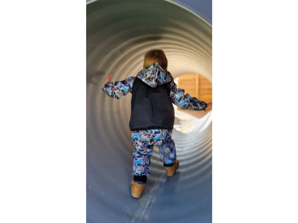 Funkční dětská bunda Yháček, z vnější strany je nepromokavá, odolná proti větru, dešti, vhodná i do sněhu. Z rubové strany je hřejivý flís. Bunda má kapsy a kapucku. Je lemovaná pruženkou, lehce nabíranou, aby se sníh či vítr nedostal k dítěti.