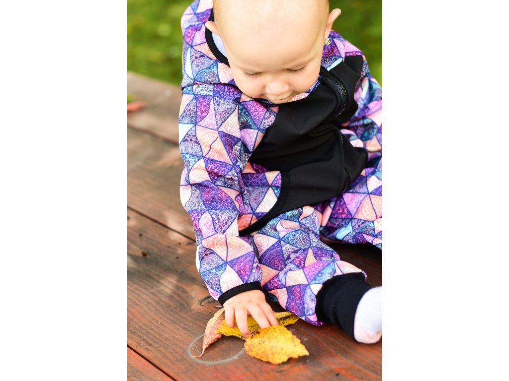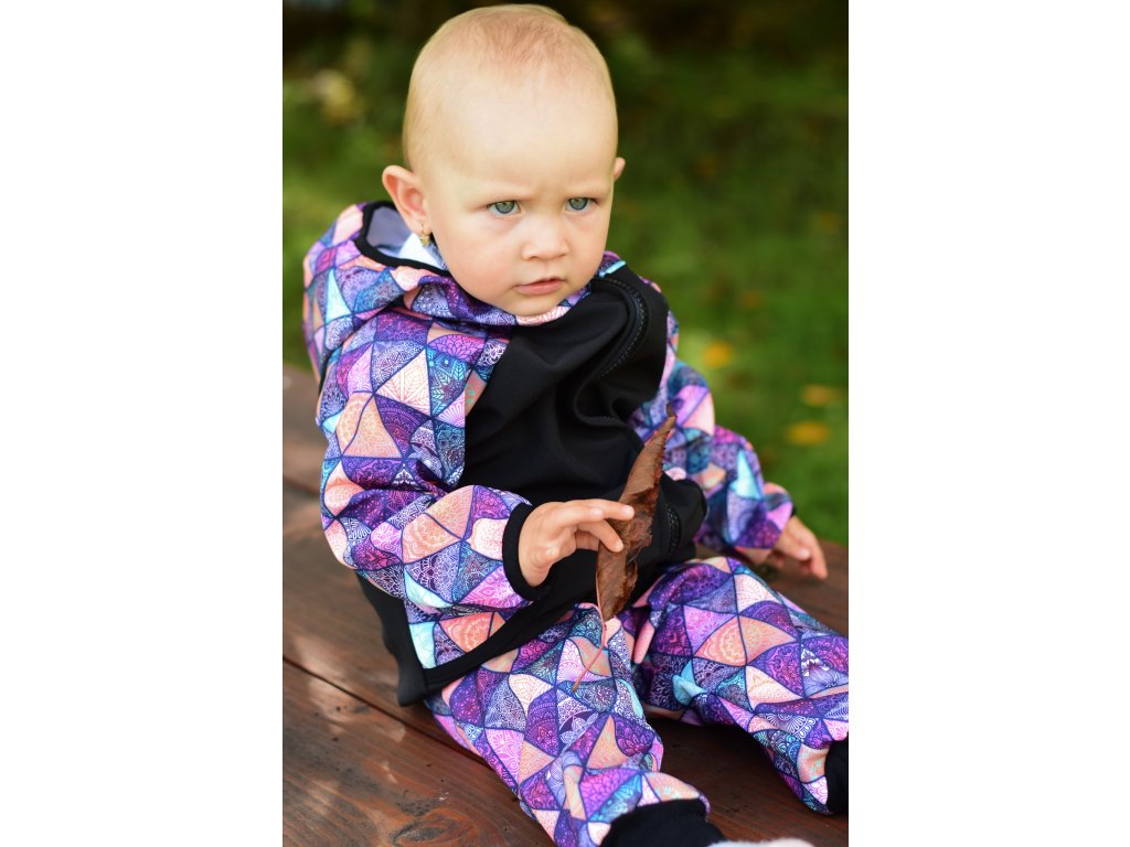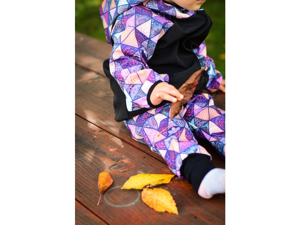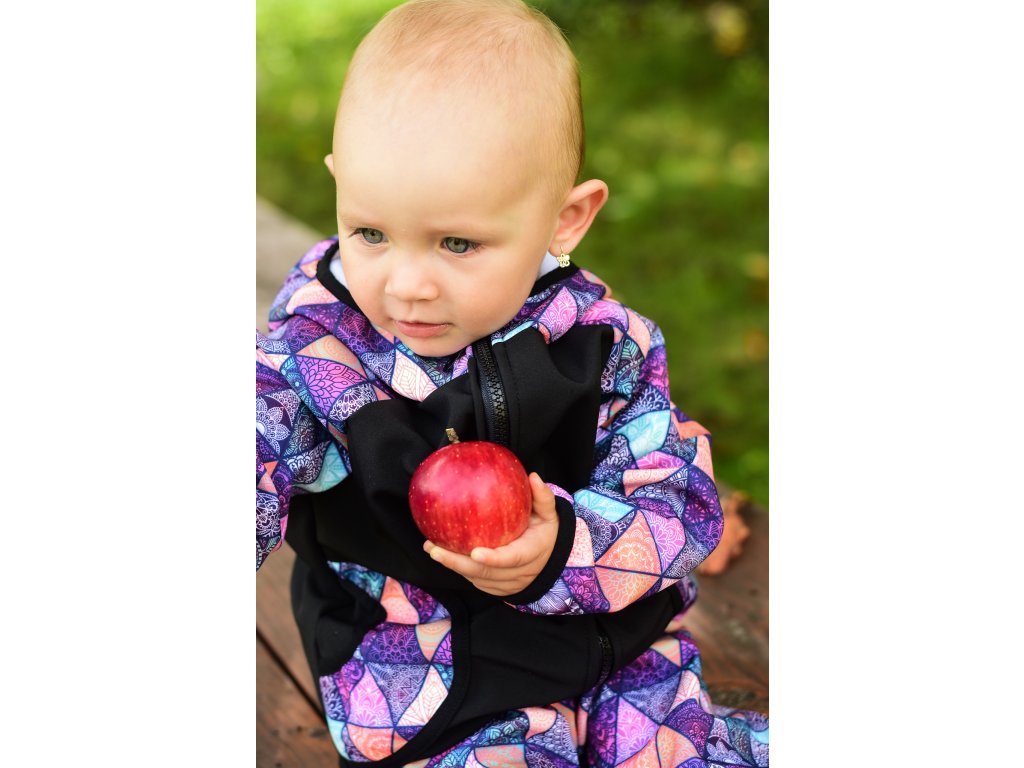 Funkční bunda Yháček, z vnější strany je nepromokavá, odolná proti větru, dešti, vhodná i do sněhu. Z rubové strany je hřejivý flís. Bunda má kapsy a kapucku. Je lemovaná pruženkou, lehce nabíranou, aby se sníh či vítr nedostal k dítěti.